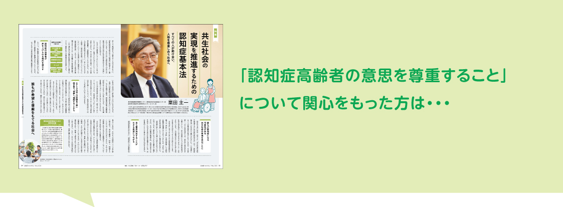 ぜひ、2024年5月号「共生社会の実現を推進するための認知症基本法」も読み返してみてください。