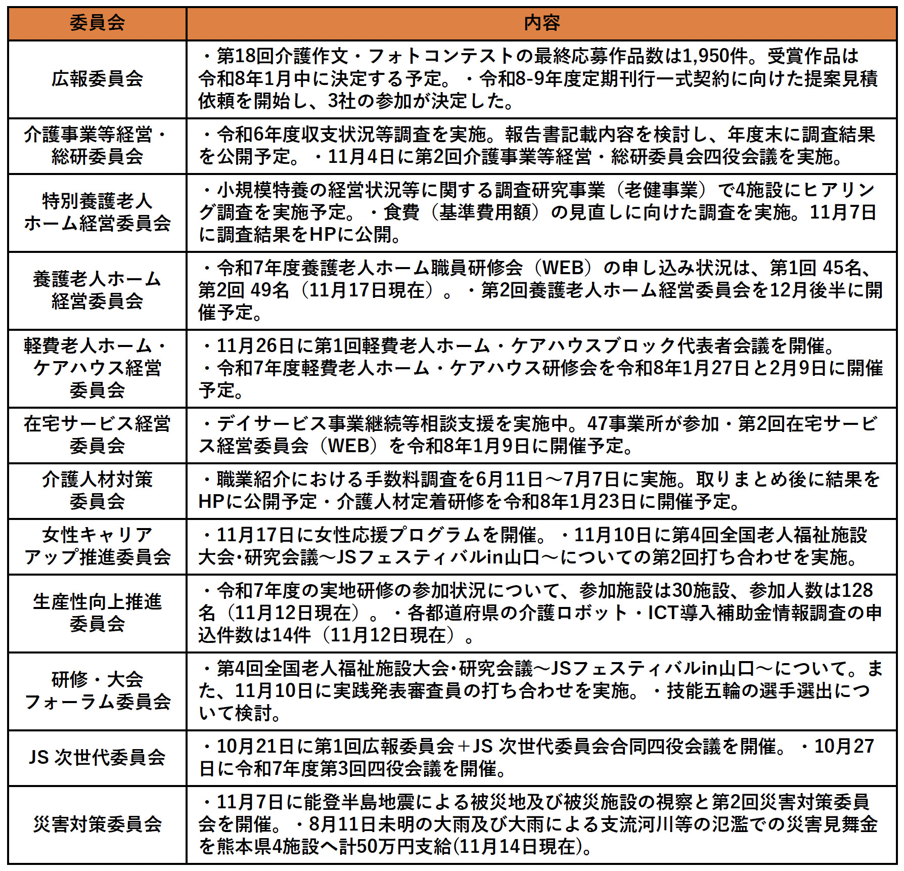 全国老施協は11月19日、第6回正副会長・委員長会議を開催した。「情報セキュリティの脅威とその対策ー情報セキュリティ10大脅威2025ー」と題する講演と、各委員会の活動報告が行われた。報告の概要は以下の通り。