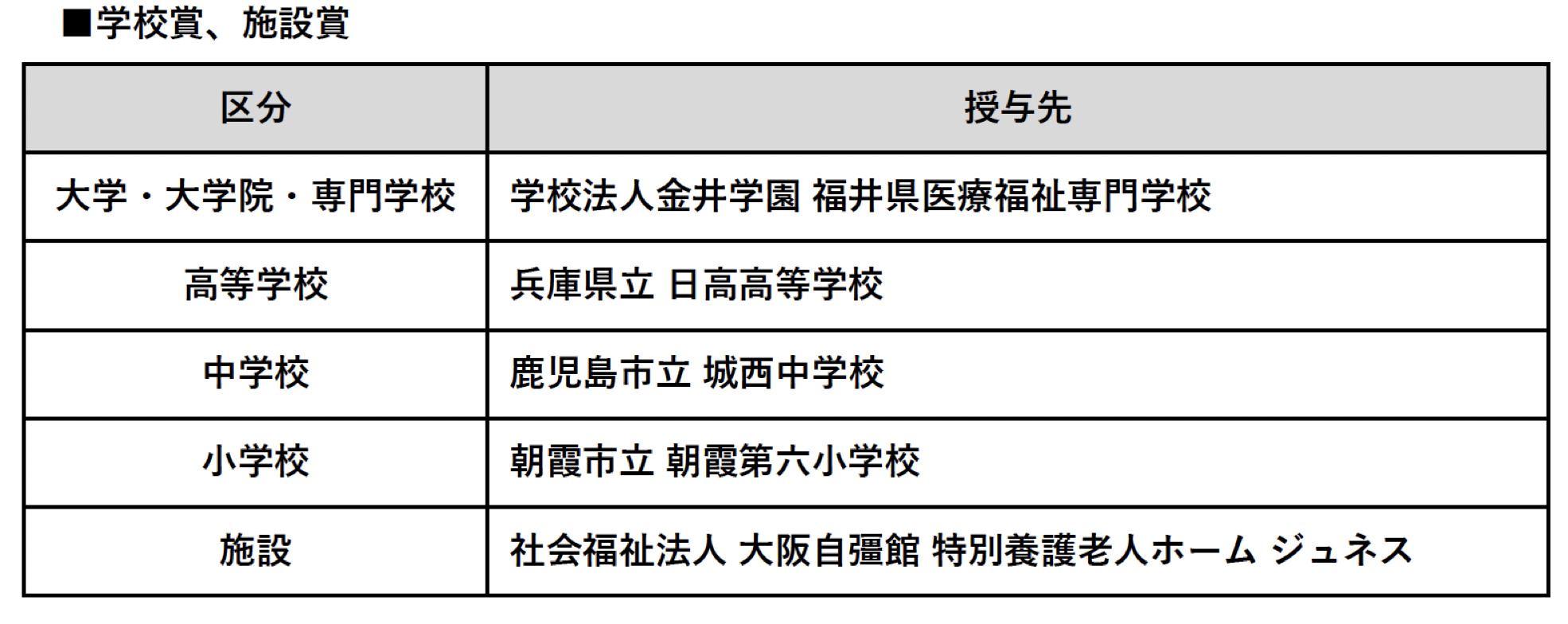 第18回介護作文・フォトコンテストは、令和7年7月15日から同年9月30日までの応募期間中に総数1,950点の応募があり、厳正なる審査の結果、各部門の受賞作品を決定した。両部門を通して、一次審査通過者の多さで判断される学校賞に今年度から新たに加わった「施設賞」は、社会福祉法⼈⼤阪⾃彊館特別養護⽼⼈ホーム ジュネスが受賞した。