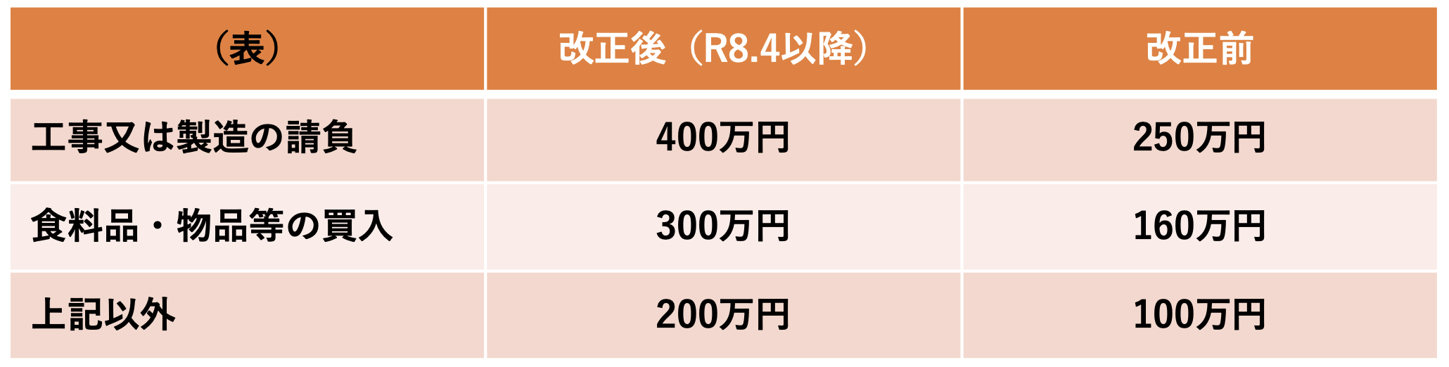 ▶随意契約時、2社見積で差し支えないとされる上限額を引き上げる