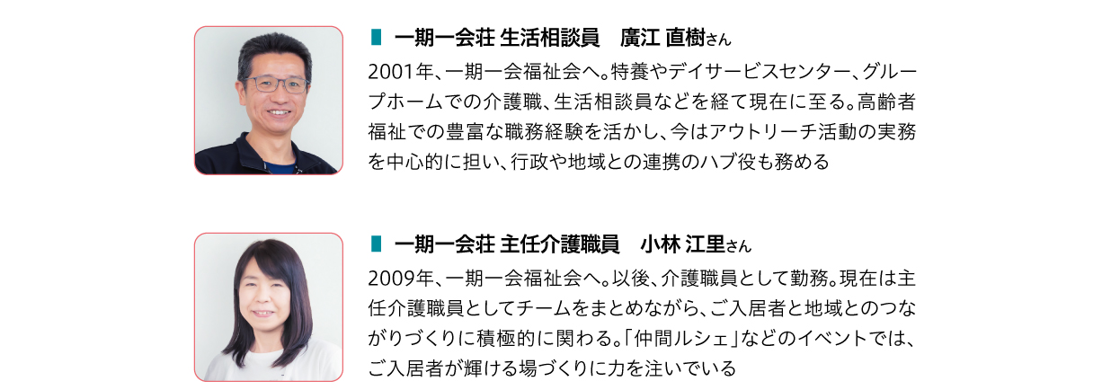 「現場にそれが浸透するには時間がかかることもありますが、一期一会荘には職員のやる気を後押しするような空気がありました」と廣江さん。