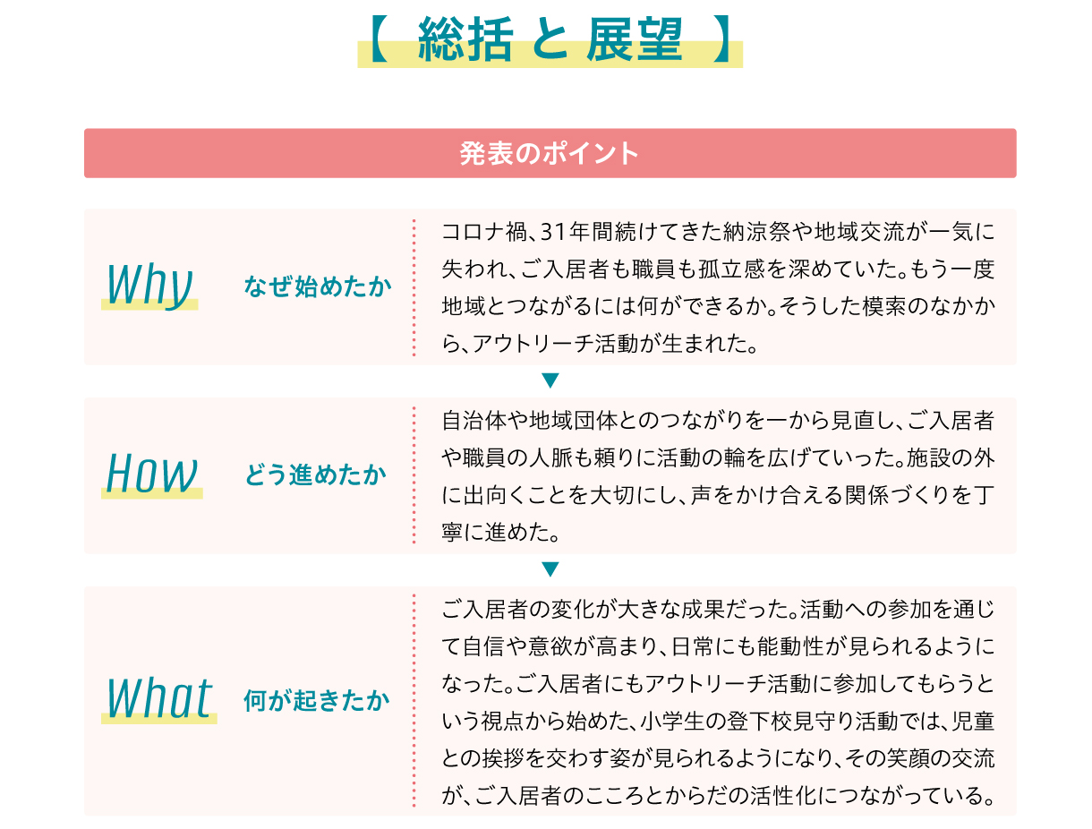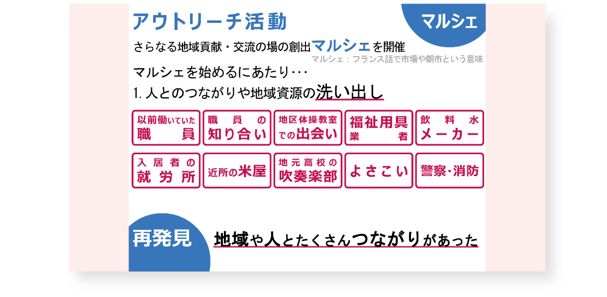 アウトリーチ活動が始まったのは、施設全体で地域と関わっていこうという目標を荘長が掲げたことがきっかけでした。