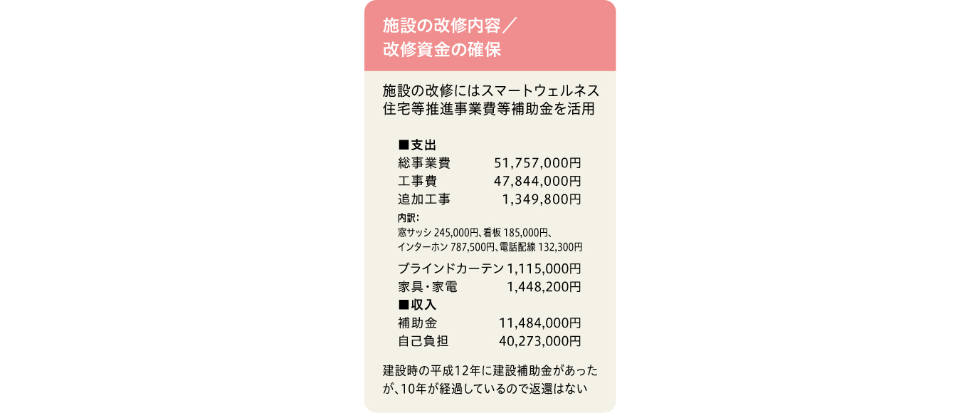 そこで要支援1から要介護2の方の状態を悪くしないために、そして、この地域でいつまでも暮らしていただくために、何より、空室を作らないためにも、今後を見据えてサービス付き高齢者向け住宅への転用を決めました。