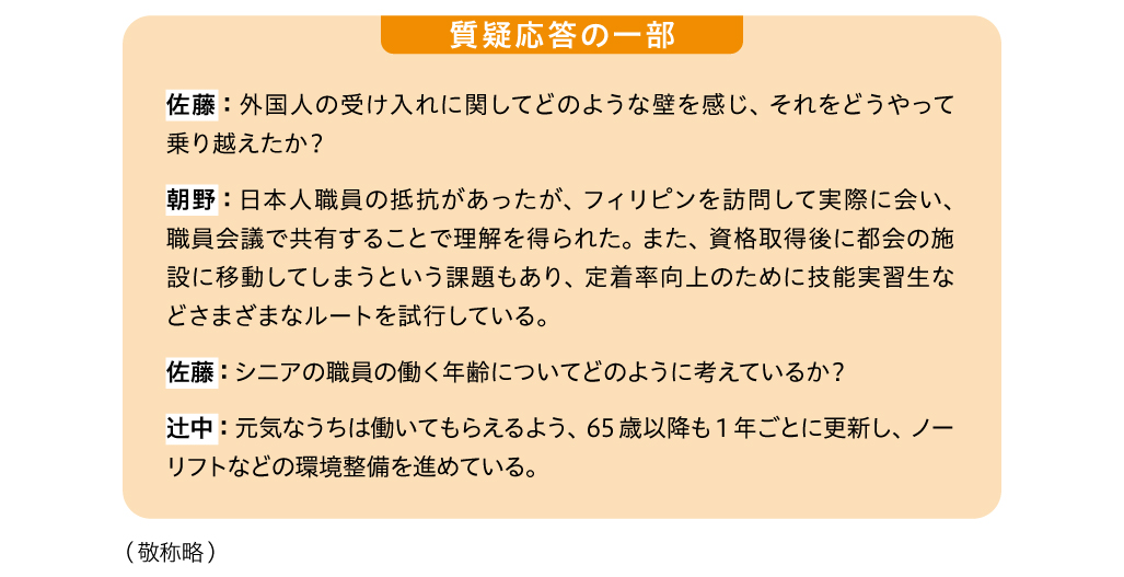介護現場で活躍する人材が多様化していることで、より一層、職場に一体感が求められています。女性をはじめ、さまざまな人材が自分らしく活躍できる組織づくりについて、専門家と介護現場、両方の視点から、具体的な事例を交えながら意見交換しました。