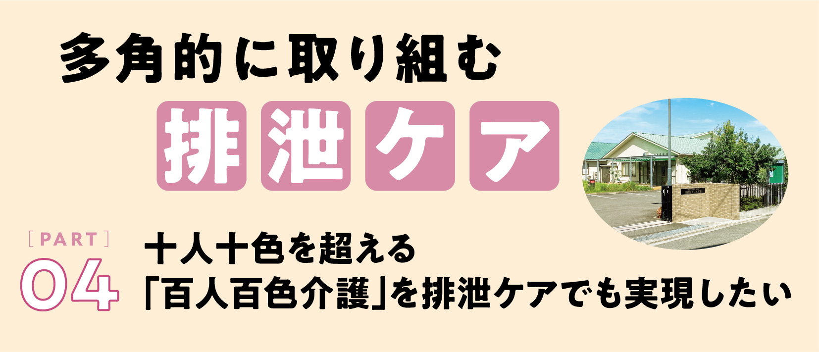 多角的に取り組む排泄ケア PART4 十人十色を超える 「百人百色介護」を 排泄ケアでも実現したい